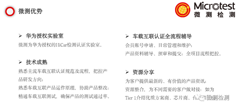 微測(cè)檢測(cè)擁有市面主流車載互聯(lián)檢測(cè)認(rèn)證能力(HUAWEI HiCar、Apple CarPlay、Android Auto、Baidu Carlife),并且是華為HiCar官方授權(quán)實(shí)驗(yàn)室,在車載互聯(lián)領(lǐng)域擁有超8年經(jīng)驗(yàn),能夠?yàn)榭蛻籼峁┮徽臼綑z測(cè)認(rèn)證服務(wù)!